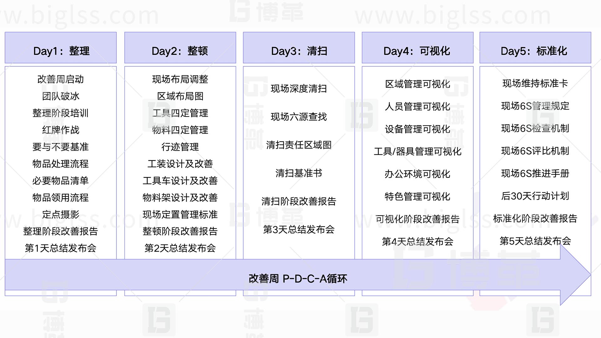 博革咨詢的6S推進不僅僅是為了現場的可視化,更重要的是通過6S的推進,建立以現場標準化為基礎的持續改善企業文化。