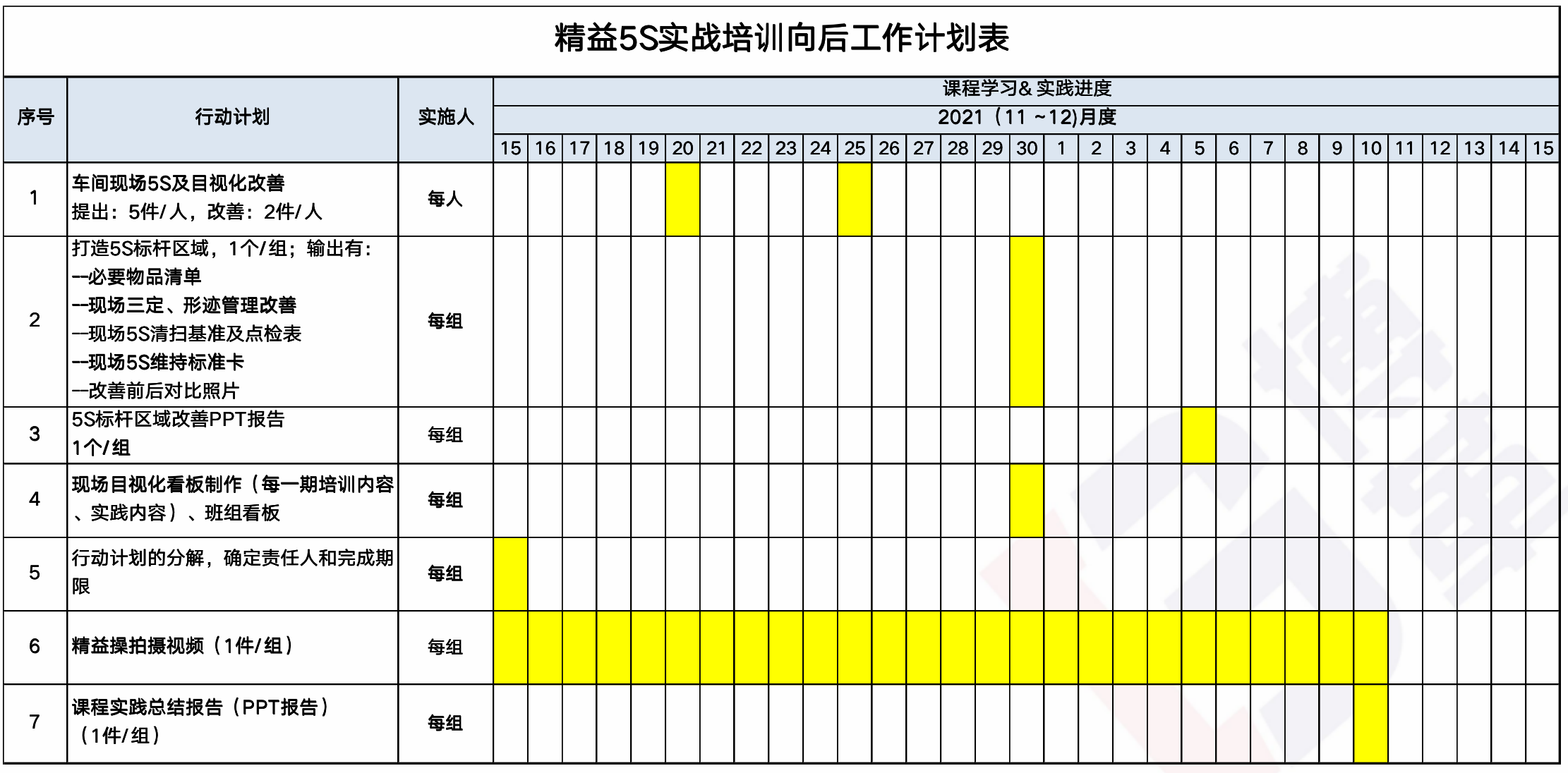 在精益管理的導(dǎo)入階段需要導(dǎo)入精益實(shí)戰(zhàn)培訓(xùn),并且要持續(xù)進(jìn)行,形成公司的輪訓(xùn)制度;每次培訓(xùn)結(jié)束之后需制定下步的工作計(jì)劃,使精益實(shí)戰(zhàn)培訓(xùn)閉環(huán)。
