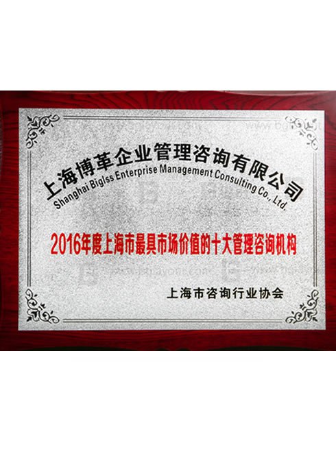 榮獲“上海市最具市場價值的十大管理咨詢機構”