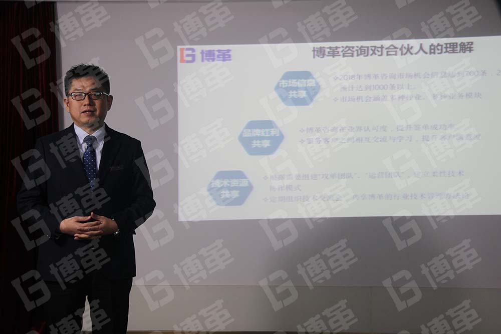 2019年1月20日下午13點,博革咨詢集團合伙人公開招募會在上海長寧區博革集團總部正式拉開帷幕。博革咨詢金總、李總、賀總、易總與來自五湖四海的未來合伙人歡聚一堂,回首過去展望未來。十分鐘的談笑風生、簡單交流之后,13點10分,公開交流暨合伙人招募會正式開始。