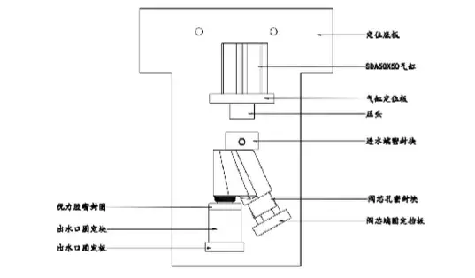 1,上圖是試氣工裝的參考圖,具體結構需依據產品的實際結構來設計,思路就是用盡可能簡單的方式密封產品,讓需檢測密封的部分充滿氣體來確認其密封性;