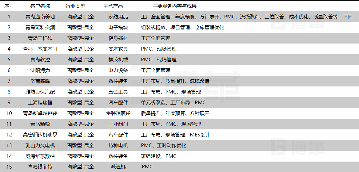 熟悉行業(yè):大型單件的裝備制造業(yè)、多品小批的機械制造業(yè)、多品小批的家紡制造業(yè)、連續(xù)型生產(chǎn)的醫(yī)藥食品精細化工制造業(yè);