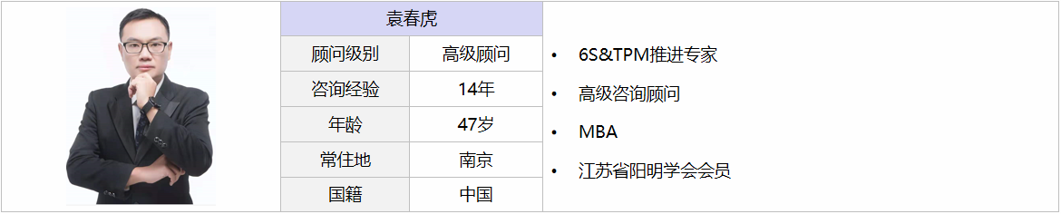 專注于精益生產(chǎn)領(lǐng)域的研究與運用。系統(tǒng)掌握精益生產(chǎn)理念和技術(shù)。擅長啟發(fā)性教育,嫻熟運用TOYOTA KATA進行精益人才育成;擅長6S、TPM、精益生產(chǎn)理論講授,現(xiàn)場輔導(dǎo)落實,以技術(shù)性改善為基礎(chǔ)實施全面改善;在咨詢實踐中注重結(jié)合陽明心學(xué)以及精神分析的理論,秉持人文關(guān)懷、重視員工個人發(fā)展。