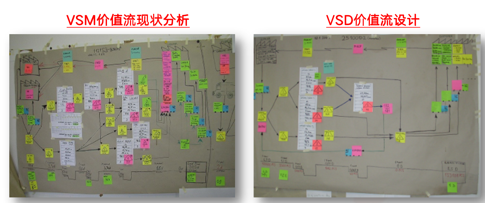 全局化了解工廠生產(chǎn)系統(tǒng)各環(huán)節(jié)的關(guān)系,評估信息流動和產(chǎn)品流動的狀況。通過價值流圖,顯示過程中非增值活動的主要問題點,暴露浪費的根源,從而進行改善舉措規(guī)劃,統(tǒng)一工作重點。
