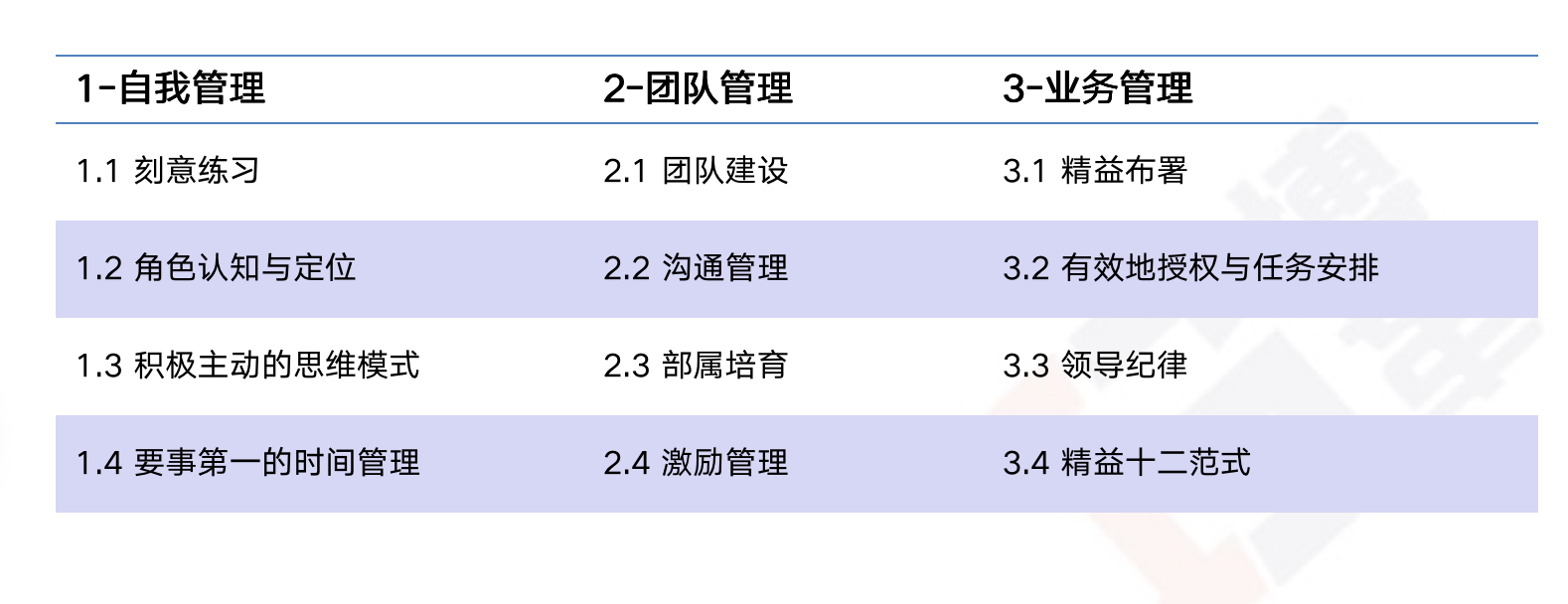 將管理者所應(yīng)具備最基本的理念、態(tài)度、原則與技法,匯總成【自我管理】、【團隊管理】、【業(yè)務(wù)管理】三大模塊,讓其知曉日常管理方法與原則間的差距,了解管理的弱點及偏差,掌握系統(tǒng)的全套管理方法和工具,從而重整自己的管理經(jīng)驗