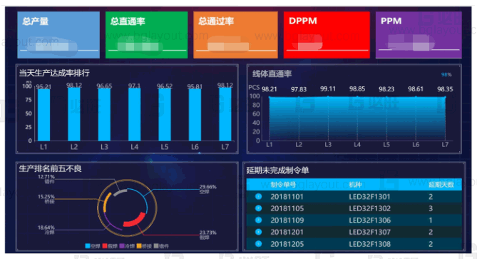 可視化—車間看板:透過看板工具及生產(chǎn)過程數(shù)據(jù)實現(xiàn)可視化看板的制作及呈現(xiàn)。