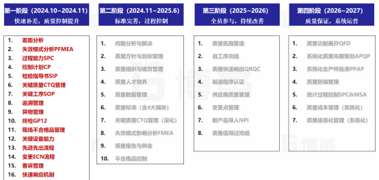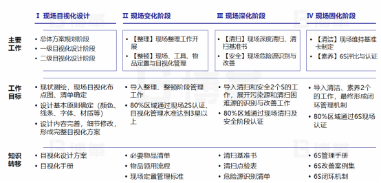 接到調研信息的時候正值國慶前兩天,接咨詢調研服務到信息的第二天博革咨詢調研團隊就開赴現場,展開為期三天的調研服務,同時為客戶制訂了精益生產咨詢方案,本方案分為三個階段四大模塊,三大階段分別是:變化階段、深化階段、固化階段,四大模塊分別是:6S目視化管理、生產布局優化、質量管理提升、生產管理提升。