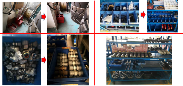 某煤機集團防爆車標準化工位建設促進精益現場建設案例 自精益生產開展以來,原小庫房存余的各型液壓膠管共計2118根,通過統計、甄別、核減,現已消耗938根,核減率達到了44.3%,預計節約成本14萬元。 /news/4875.html