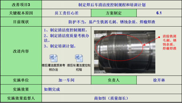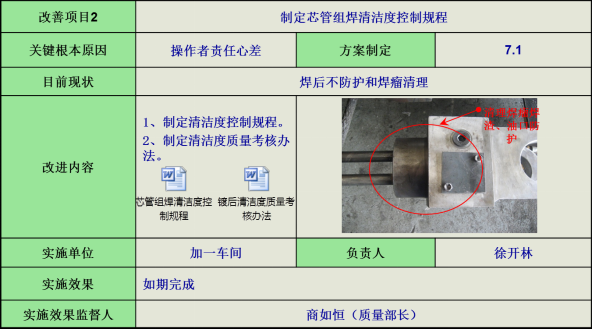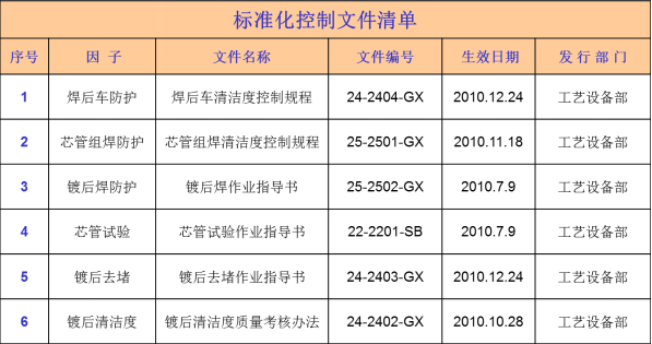 5)芯管組焊方法,針對芯管焊后不防護(hù)和焊瘤清理問題,制定芯管組焊清潔度控制規(guī)程。