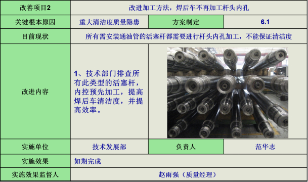由于鍍后各工序造成的清潔度問題對伸臂油缸的質(zhì)量會有致命的影響,會造成缸筒整體報(bào)廢,因此油缸清潔度問題急需改善。