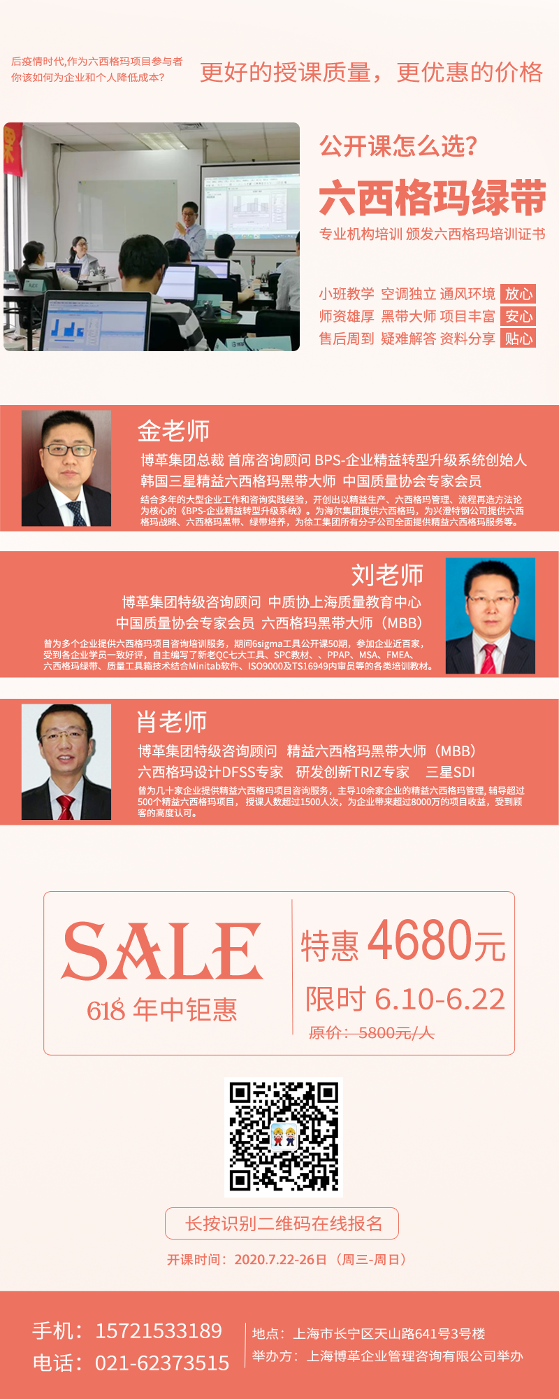 2)六西格瑪綠帶考試費用:人民幣400元/人。