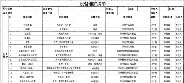 設(shè)備維護(hù)清單