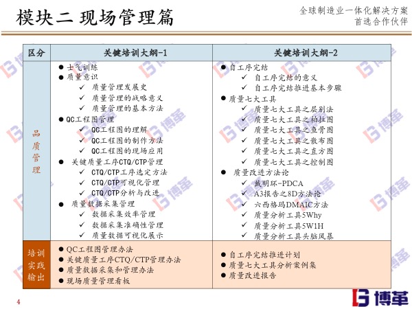 歡迎您訪問博革咨詢官網!博革咨詢是中國首家整合精益生產/六西格瑪/流程再造的咨詢公司,專注于提供 精益生產、6S現場管理、TPM設備管理、精益工廠布局、專業目視化、精益供應鏈精益研發、六西格瑪管理智能制造等綜合性問題解決方案并負責落地實施。