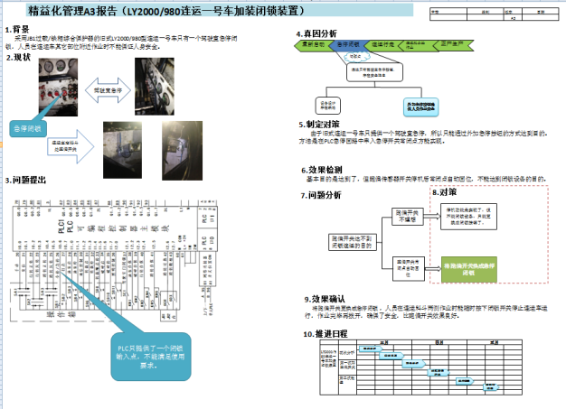 把問題的源頭,分析,糾正和執行計劃放在一張A3的紙上表達出來,并及時更新或報告結果。A3報告以簡單且明確的溝通方式,讓所有人都能了解